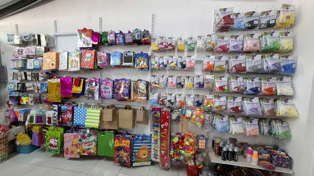 Encuentras todo lo que necesitas para celebrar y sorprender en cada ocasión especial piñatas, globos, velas, cintas y accesorios para fiestas. Además, contamos con bolsas de regalo, papel, moños y detalles decorativos para presentar tus obsequios de forma creativa y especial. Aquí podrás armar celebraciones únicas, llenas de color, alegría y emoción, con productos de excelente calidad y precios accesibles.